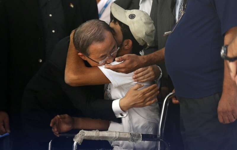 המזכ״ל באן קיבל במהלך ביקורו ברצועת עזה תצוגת תכלית של ההרס שנגרם במהלך הלחימה. באן, שלווה במהלך הביקור ברצועה, ע״י שרים בממשלת האחדות הפלשתינית ובכירי אונר״א והארגונים הבי״נל הפועלים בעזה, נלקח אל בתי ספר ומבנים ציבוריים ששימשו כמבני מחסה עבור אזרחים, שנמלטו מבתיהם אשר הופצצו ונהרסו ע״י צה״ל במהלך מבצע צוק איתן.