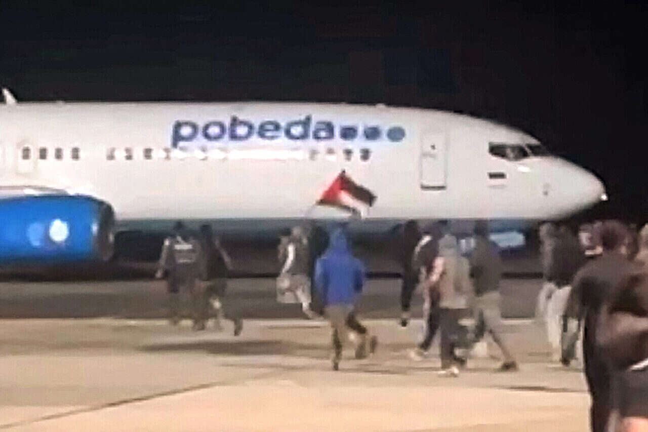 המון מוסת פורץ לנמל התעופה במחצ'קלה בחיפוש אחר נוסעים יהודים // צילום: רשתות חברתיות