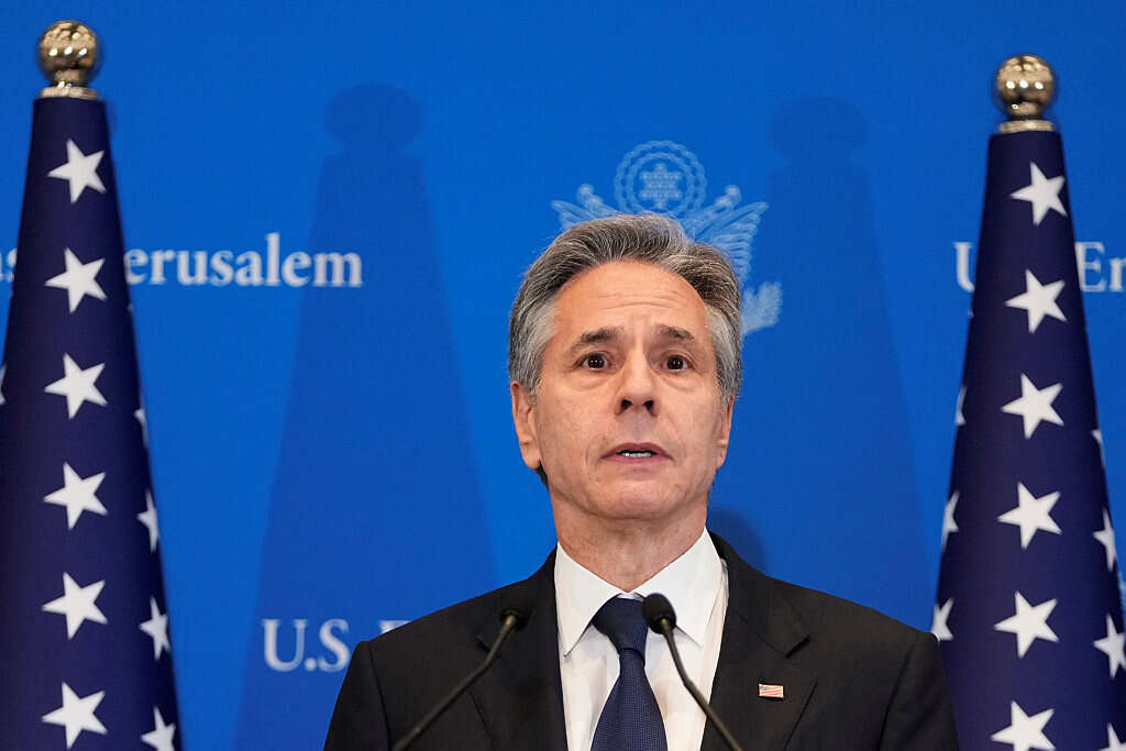 מזכיר המדינה האמריקני, אנתוני בלינקן, קיים היום (רביעי) מסיבת עיתונאים בביקרו בישראל.