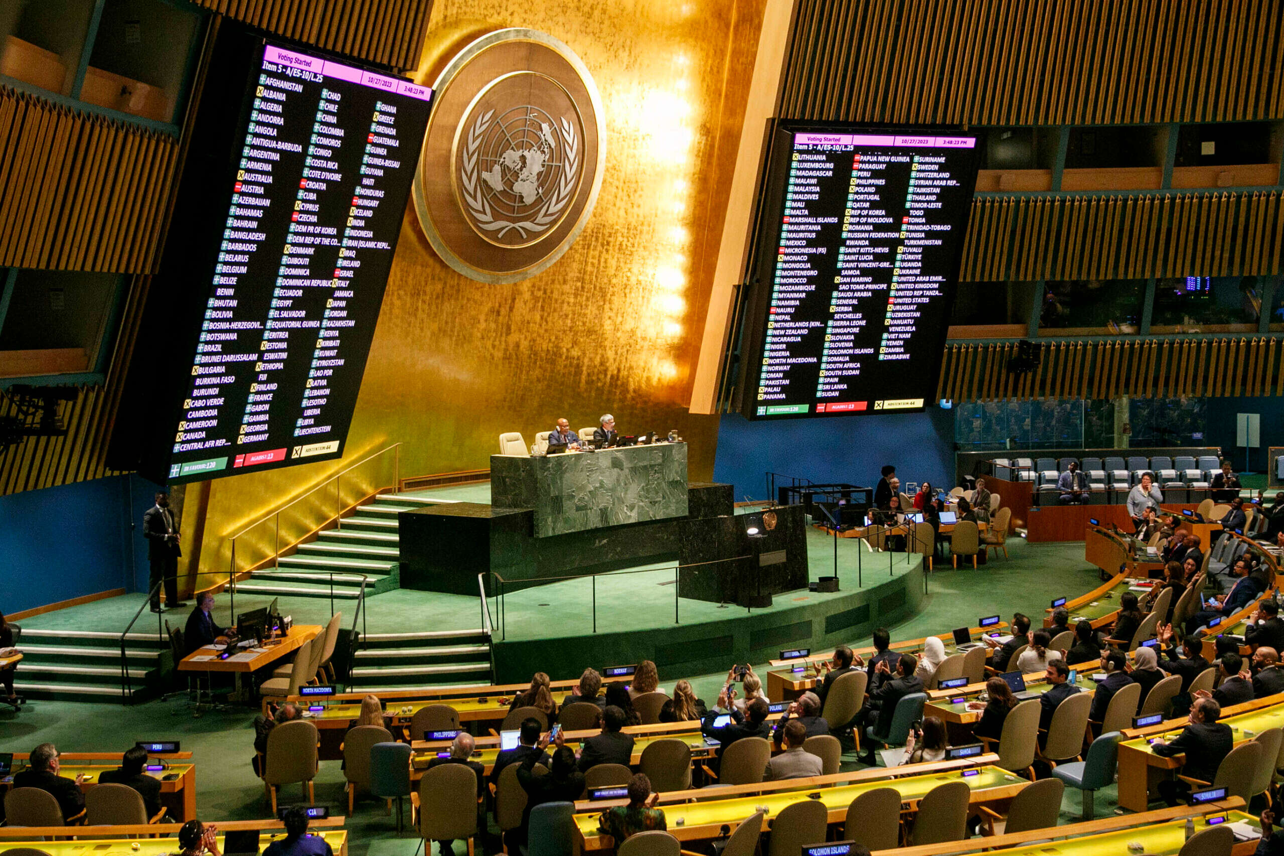 העצרת הכללית אישרה כעת את ההצעה הפלסטינית הקוראת לסנקציות ואמברגו נשק נגד מדינת ישראל.