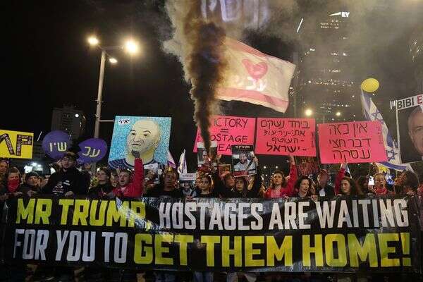 נשיא ארה"ב, דונלד טראמפ, נאם מוקדם יותר בכנסייה, כשמשפחות חטופים בקהל. "מסביב לעולם, ארה"ב חוזרת להיות מכובדת", אמר הנשיא. "מספר ימים לפני שנכנסתי לתפקיד הצוות שלי הגיע להסכם, הפסיק את שפיכות הדם באזור - והחזיר את החטופים הביתה".