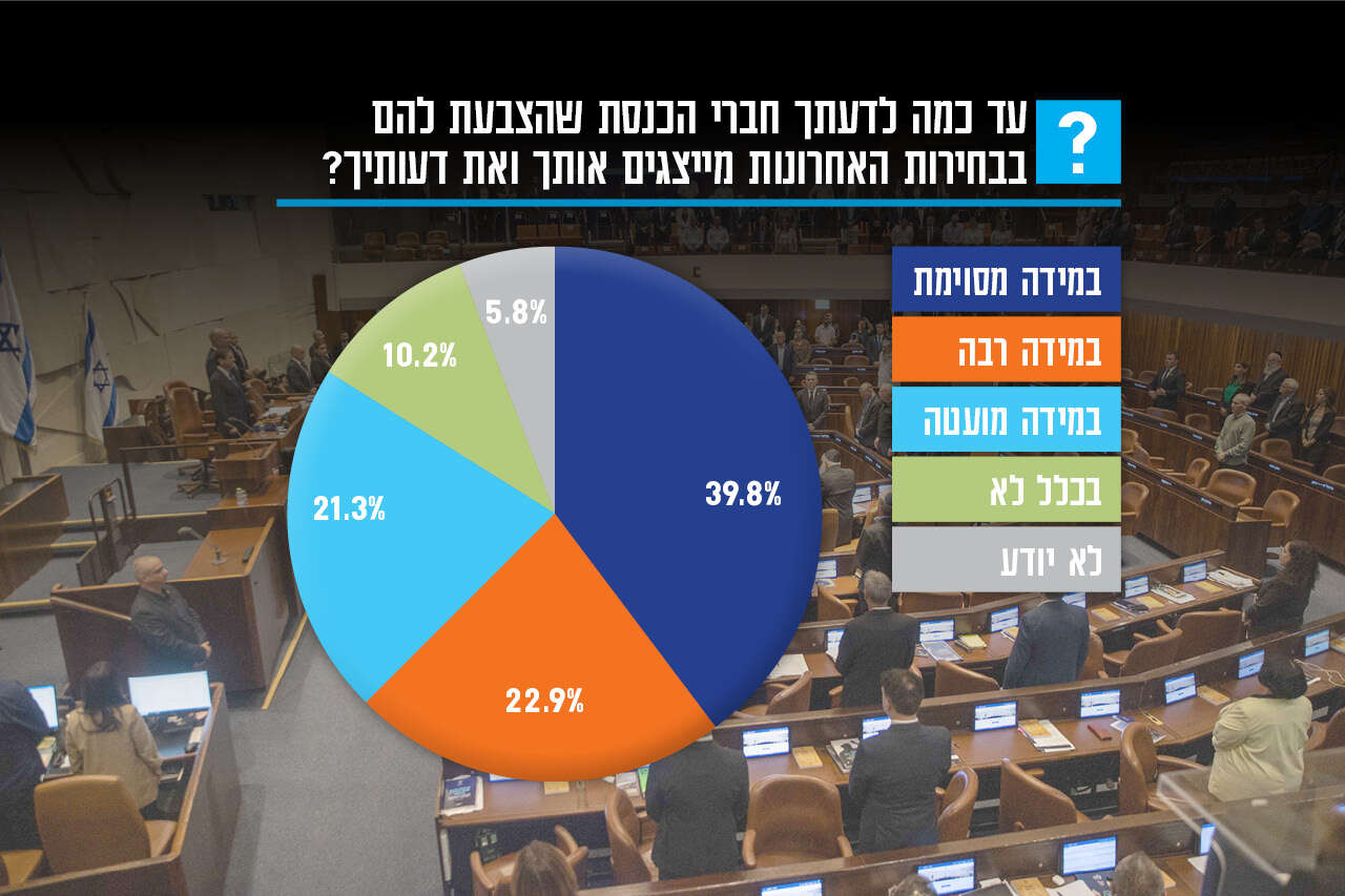 "הכנסת, בית המחוקקים ובית נבחרי העם, זוכה לאמון הנמוך ביותר מבין שלוש רשויות השלטון", מציין ראש מכון תכלית, יניב כהן. לדבריו, רוב הציבור סבור שהממשלה שולטת בפעילות הכנסת. מעניין כי דווקא חברי האופוזיציה מעוררים תקווה רבה יותר בקרב הציבור.