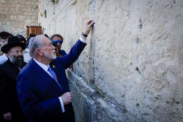 שגריר ארה"ב החדש בישראל מייק האקבי מבקר בשעה זו (שישי) בכותל המערבי בירושלים, זאת אחרי שהגיע אמש לישראל. באבני הכותל הוא הטמין פתק שמסר לו נשיא ארה"ב טראמפ, ולאחר מכן מסר הצהרה לתקשורת.