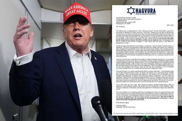 לקראת הפגישה הערב בין נשיא ארה"ב לבין ראש הממשלה נתניהו, שלחו משפחות שכולות מפורום הגבורה מכתב רשמי לנשיא טראמפ בדרישה חד-משמעית לתמיכה אמריקנית מלאה בהכרעת החמאס. במכתבן, מבקשות המשפחות מהנשיא לתמוך במדינת ישראל עד להשגת ניצחון מוחלט ומיטוט שלטון החמאס בעזה. כמו כן מפצירות המשפחות בנשיא לממש את הצהרתו הקודמת, וקוראים לו "לפתוח את שערי הגהנום" על ארגון הטרור הרצחני.