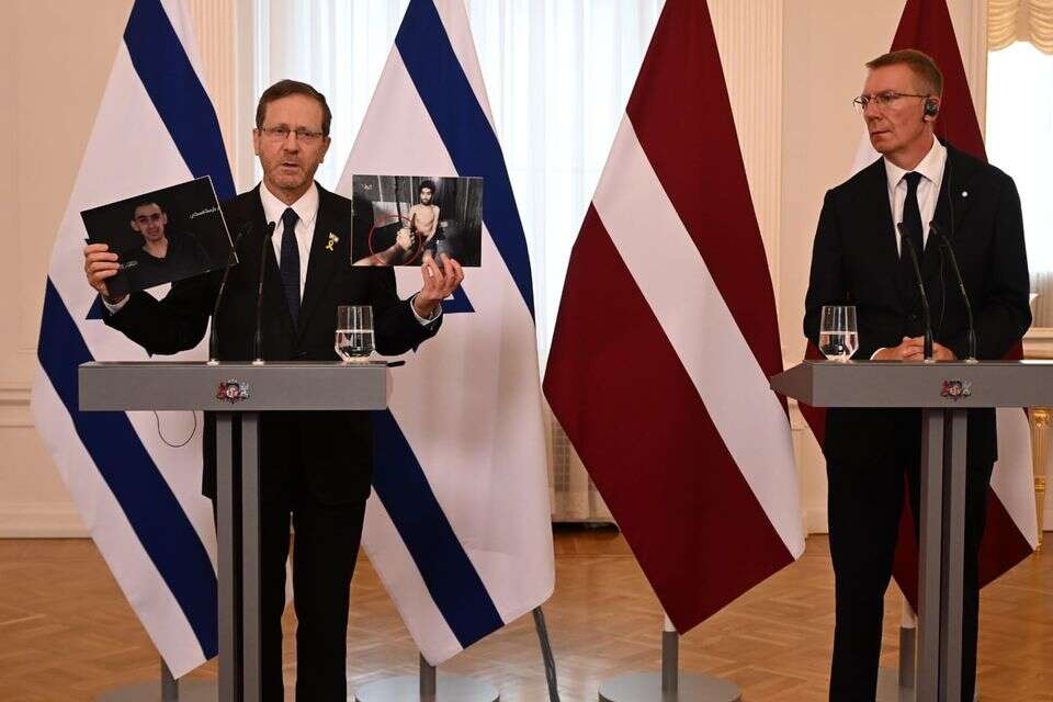 "אביתר דוד ורום ברסלבסקי מתחננים על חייהם כמו יתר החטופים, שעוברים גיהנום נורא, ברעב נורא, בהרעבה מכוונת", כך אמר היום (שלישי) נציג המדינה יצחק הרצוג לאחר פגישה עם נשיא לטביה אדגארס רינקביצ׳ס בארמון הנשיא בריגה.