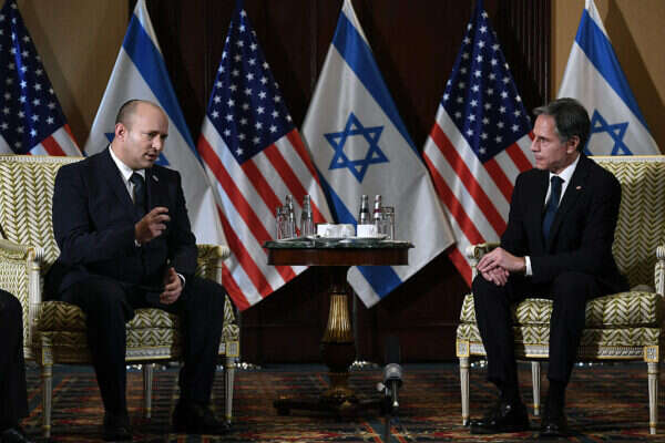 בפתח הפגישה בנט פנה למזכיר המדינה בלינקן ואמר: "אני מעריך את זה שאתם מארחים אותנו כאן בימים עמוסים אלו. זה אומר הרבה. לישראל אין בת ברית יותר חזקה ואמינה כמו ארה"ב. מראשית דרכנו ועד ימים אלו, ובמיוחד בימים אלו, אתם תמיד איתנו ויש לכם את הגב שלנו. זה משמעותי מאוד. אני יכול להבטיח שלא תמצאו חברה אמינה יותר מאיתנו".