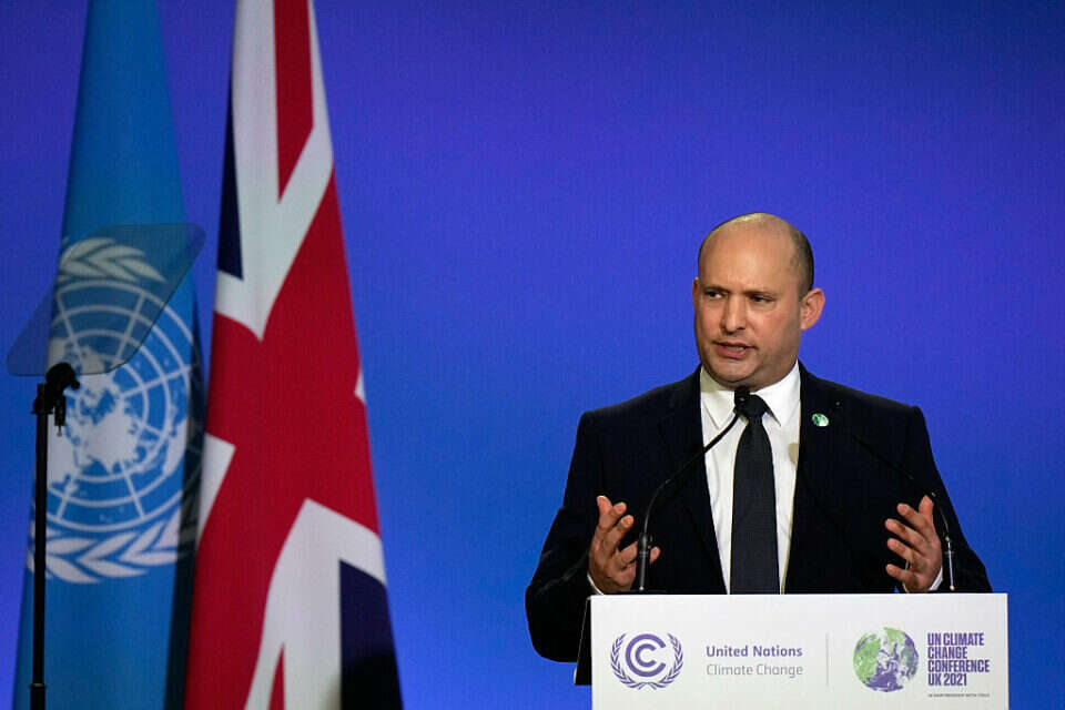 ראש הממשלה נפתלי בנט נאם בוועידת האקלים שמתקיימת השבוע בבגלזגו שבסקוטלנד. לקראת הוועידה, התחייבה הממשלה להפחתת פליטות הפחמן לאפס.