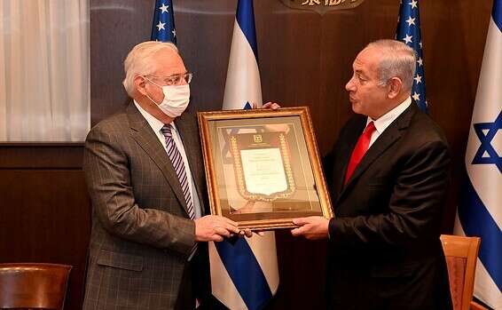 בנוסף לכך, הודה רה"מ לשגריר על השינוי ביחס האמריקני ליישובים ביהודה ושומרון. כמו כן הזכיר ראש הממשלה את מאמציו בגיבוש תוכנית השלום של ממשל טראמפ ובהשגת הסכמי הנורמליזציה עם איחוד האמירויות, בחריין, סודאן ומרוקו. בהקשר למאבק מול איראן, אמר נתניהו כי "אלה הם שני כוחות מנוגדים ביסודם – כוחות השלום, המתינות והקדמה מול כוחות תוקפנות, רצח עם ועריצות".