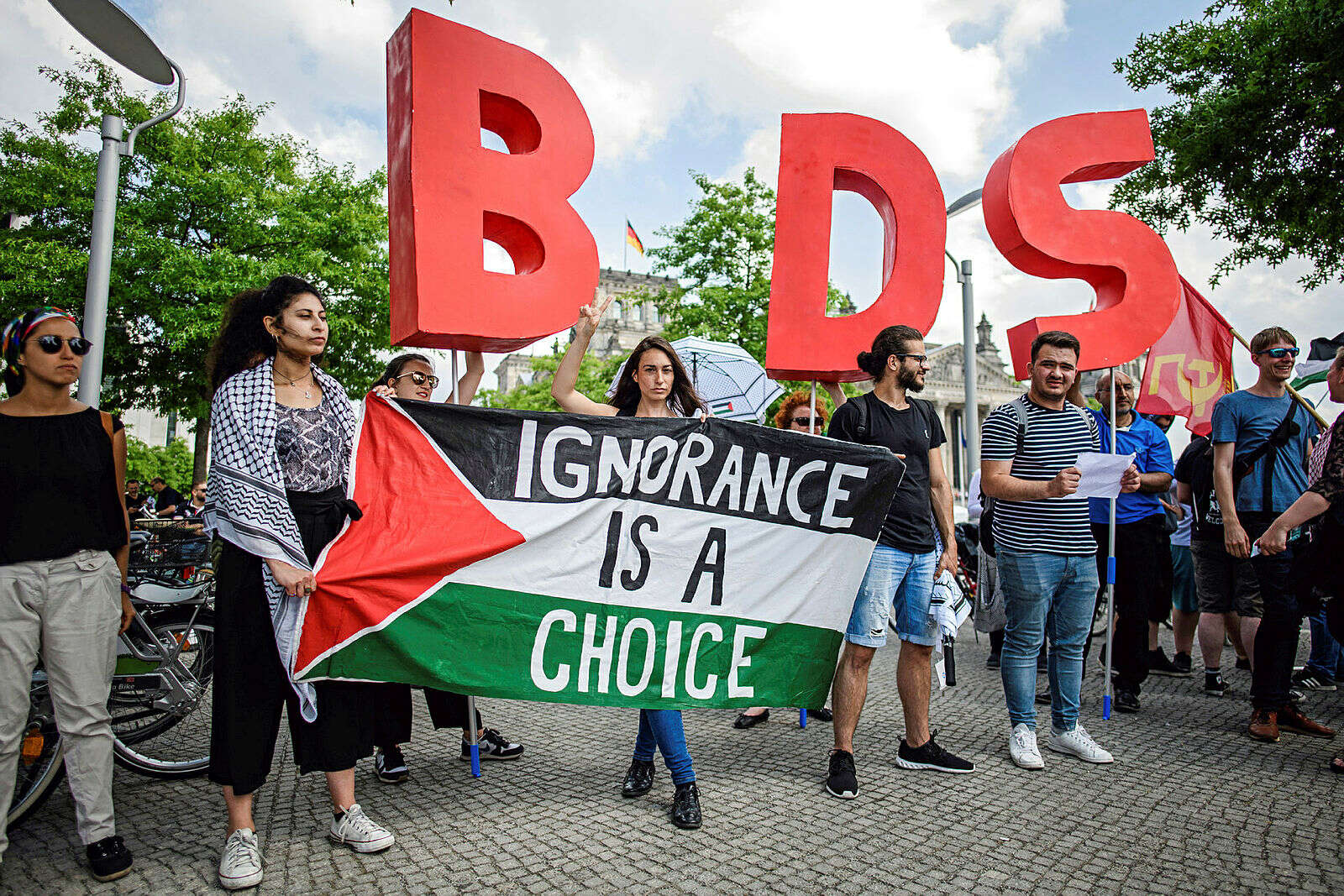 הפגנה של תנועת ה-BDS בגרמניה. טענות כי גרמניה מממנת פעילות אנטי-ישראלית, צילום: אי.פי.אי