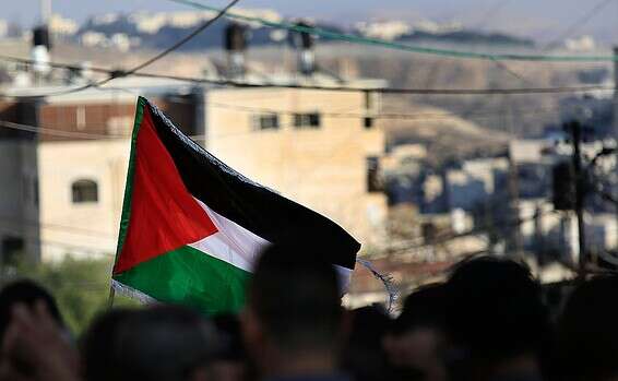 תושבי מזרח ירושלים מניפים דגל פלשתין בשכונת אבו טור