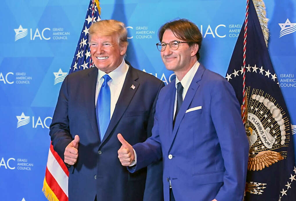 עורך "ישראל היום" בועז ביסמוט והנשיא טראמפ