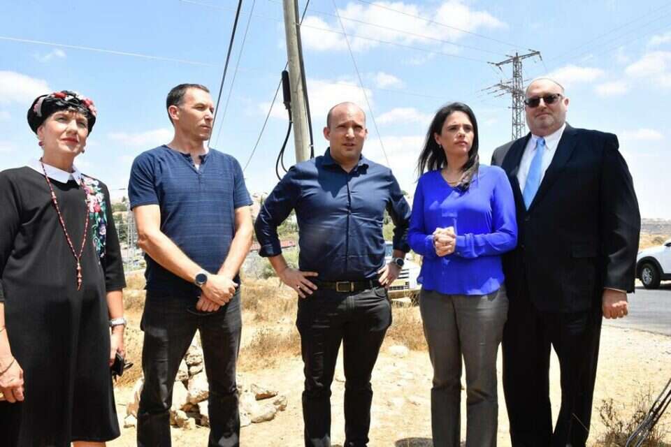 יו"ר "ימינה", איילת שקד, והשר לשעבר נפתלי בנט קיימו היום (ראשון) סיור בגוש עציון עקב אירועי הטרור האחרונים, יחד עם חברי רשימתם מתן כהנא ושולי מועלם.