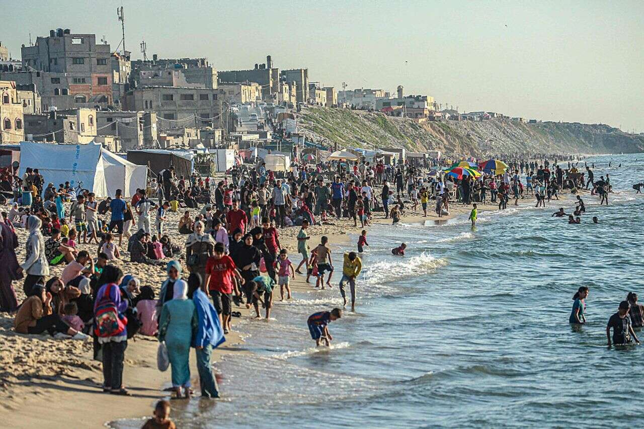 כלי תקשורת פלשתיניים תיעדו היום (רביעי) את העזתים שבילו בחוף של העיר דיר אל-בלח שבמרכז רצועת עזה.