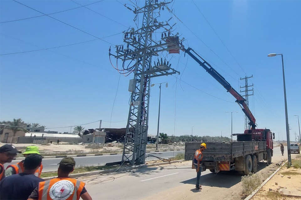 ברצועת עזה החלו לתקן את קו החשמל ברחוב סלאח א-דין. המטרה היא להפעיל את מתקן התפלת המים והביוב במערב דיר אל־בלח. הקו מחובר לצד הישראלי. ל"ישראל היום" נודע כי את האישור נתן שר הביטחון יואב גלנט, בין היתר כדי למנוע התפרצות מחלות וזיהומים.