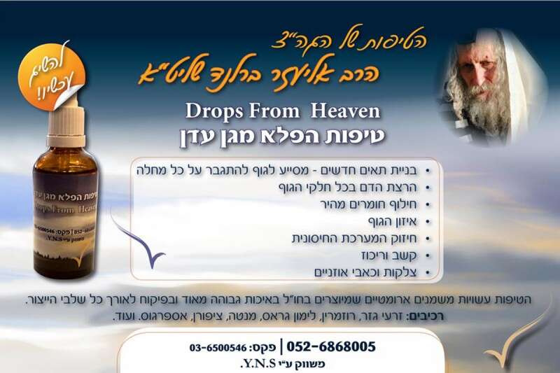 "'טיפות הפלא מגן העדן', שיטפלו בכל מחלה כולל סרטן, שיתוק, דימומים ומה לא, יכולות להיות שלכם תמורת בסך הכל 100 שקלים לבקבוקון". הפרסום הבלתי ייאמן הזה מופץ בידי חסידים בקהילת "שובו בנים" של הרב אליעזר ברלנד, ולפיו אפשר להשיג את הטיפות בטלפון, בפקס ובדירת מגורים בירושלים.