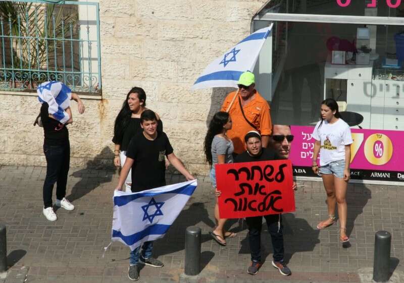 מפגינים לטובת אלאור אזריה - הרעישו וגרמו למשפט לעצור // צילום: גדעון מרקוביץ'
