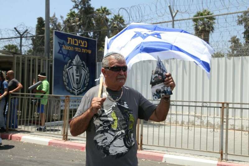 תומך של קצב בכניסה לכלא מעשיהו // צילום: גדעון מרקוביץ'