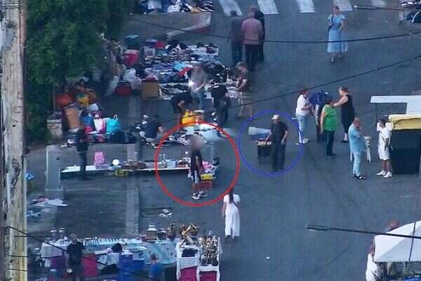 "כשהשוטר הסמוי סידר את הדוכן והחל להניח את הסחורה", מסופר בכתב האישום, "ניגש אליו הנאשם ואיים עליו בכך שנצמד אליו, עשה תנועת אגרוף בידו ואמר: 'זה שטח שלי, אל תפתח, זה שלי. תפתח, אני אשרוף אותך עם הבגדים', ומיד לאחר מכן בעט בסחורה.