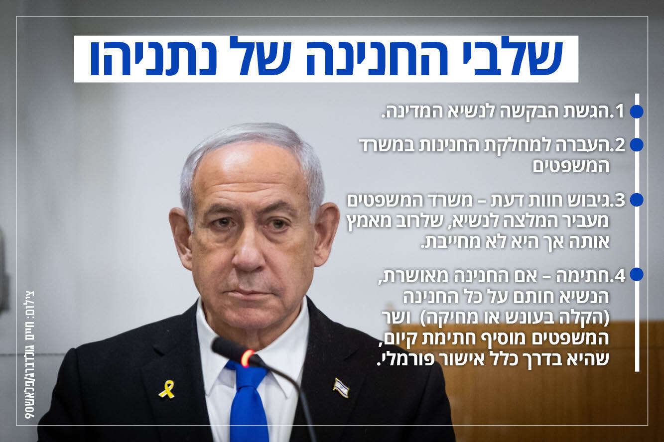 רה"מ בנימין נתניהו הגיש היום (ראשון) בקשה לנשיא המדינה, יצחק בוז'י הרצוג, לקבלת חנינה. בבקשה נימק נתניהו כי הוא מבקש להקדיש את זמנו לניהול המדינה ואיחוי הקרעים בעם.