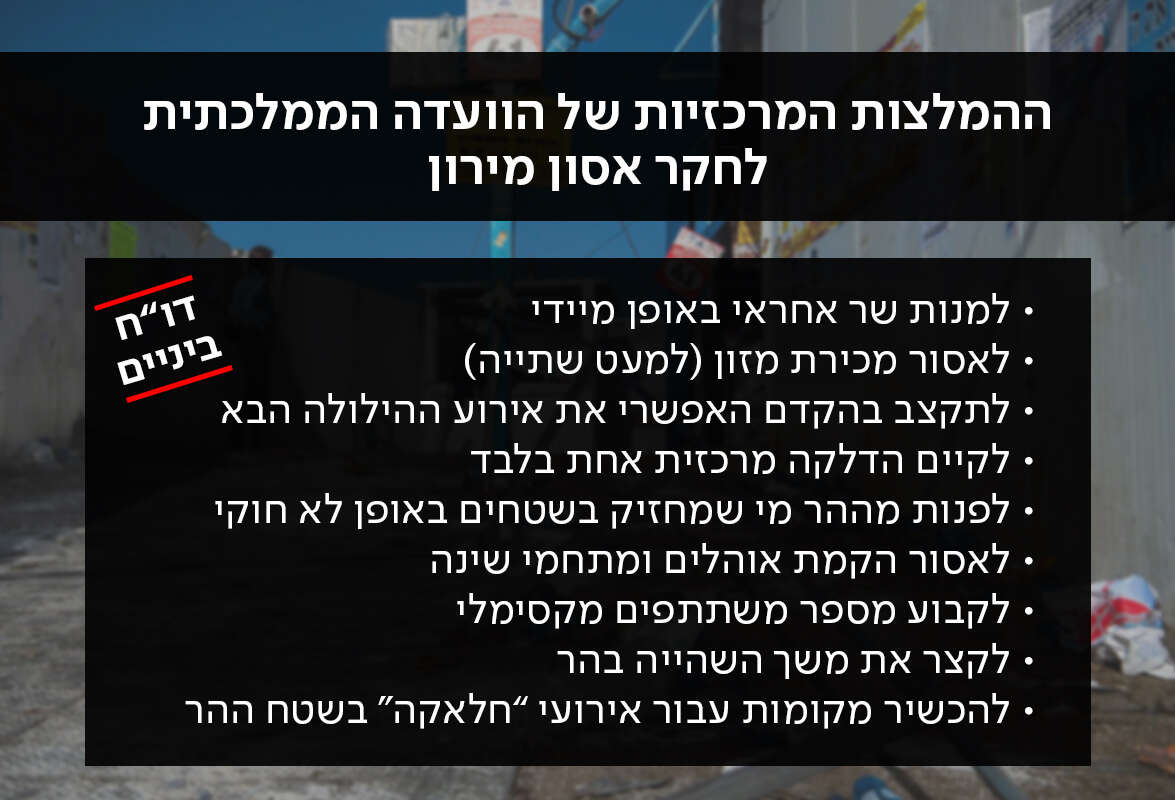בפתח הדו"ח כתבו חברי הוועדה, כי מטרת ההמלצות היא לתת מענה לסוגיות בכל הנוגע לאירוע ההילולה הבא, בחודש מאי בשנה הבאה. "מצאנו לנכון להביא המלצות ביניים אך ורק כדי לאפשר היערכות מתאימה להילולה בשנת תשפ“ב, שהרי לוחות הזמנים אינם מאפשרים להמתין בעניין זה להשלמת חוות דעת של מומחים, להשלמת בירורים נוספים או לסיום עבודת הוועדה", הדגישו חברי הוועדה.