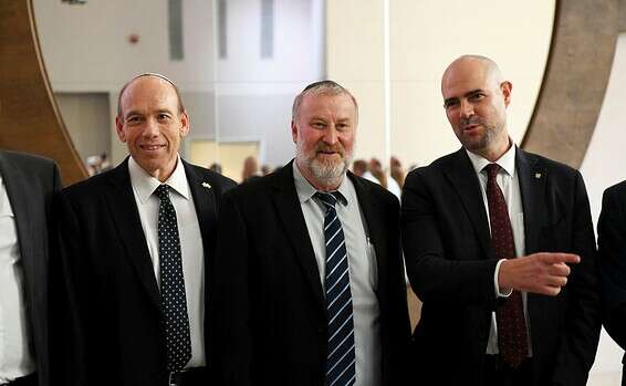 השר אוחנה, היועמ"ש מנדלבליט והמבקר אנגלמן // צילום: יוסי זליגר