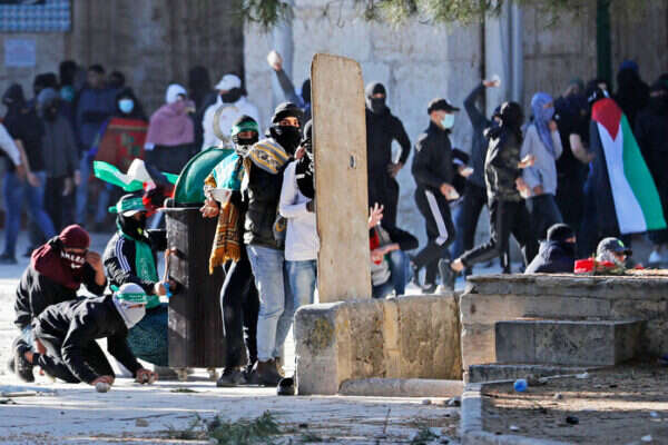 פלשתינים מתפרעים באל-אקצא | צילום: אי.אף.פי