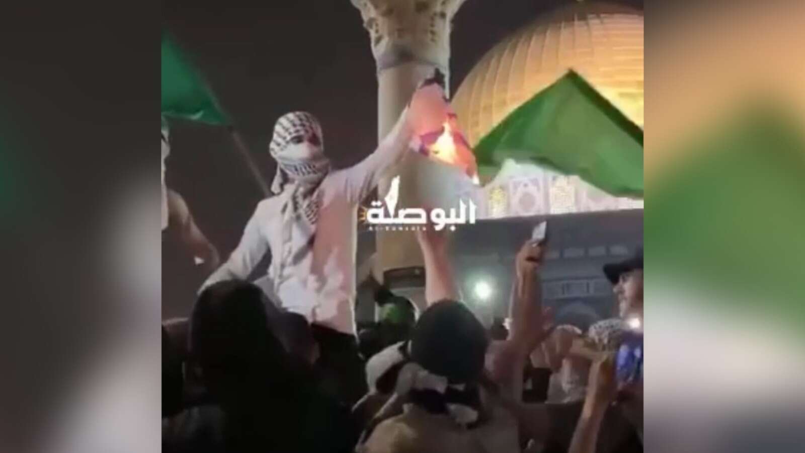 אירוע חמור בליל שישי בהר הבית בירושלים: המון ערבי משולהב שהגיע למקום החל לצעוק קריאות לאומניות ואחד המפגינים, שהונף על כתפי חבריו כשהוא רעול פנים, שרף את דגל ישראל לקול צהלות ההמון. כמו כן, בזמן שריפת הדגל נשמעה צעקת ״אללה אכבר״ שלוותה במחיאות כפיים נלהבות כאשר רבים מקרב הנוכחים תיעדו את המעשה.