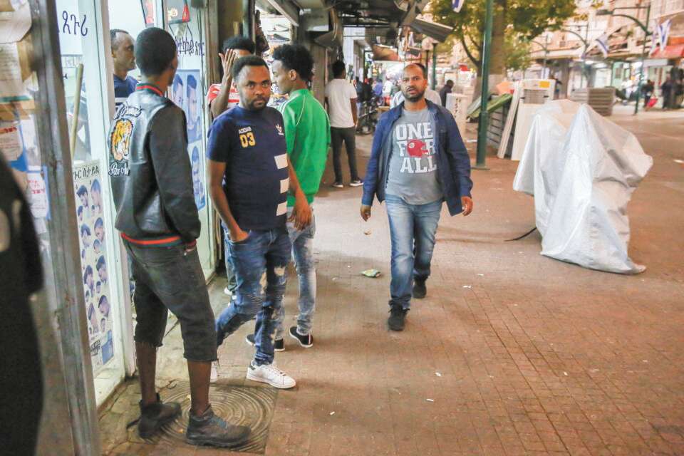 מסתננים בדרום ת"א, אתמול. "אי אפשר לעבור פה" // צילום: יהושע יוסף