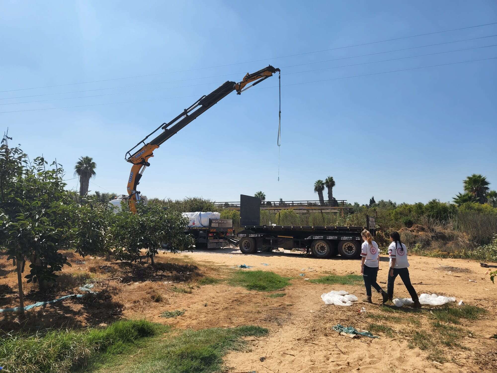 חובש רפואת חירום במד"א, יאיר קרולוב, סיפר: "כשהגענו למקום, ראינו בפרדס בשטח פתוח, משאית עם מנוף ובמרחק של כ-10 מטר שכבו שני גברים מחוסרי הכרה לאחר שהתחשמלו, אנשים שהיו במקום התחילו לבצע בהם פעולות החייאה בסיסיות בהדרכה טלפונית ממוקד מד"א, אחד היה כבן 60 והשני בשנות ה-20 לחייו. יחד עם צוותי הניידות נמרץ של מד"א, ביצענו פעולות החייאה מתקדמות וממושכות תוך מתן שוקיים חשמליים ולאחר מאמצי החייאה ממושכים בשטח, פינינו אותם לבית חולים תוך המשך פעולות החייאה כשמצבם אנוש".