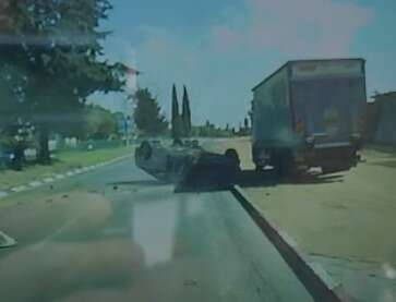 הרכב התהפך והנהגת הפוגעת המשיכה בנסיעה: תיעוד מהתאונה