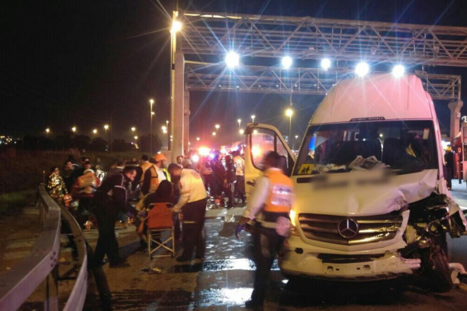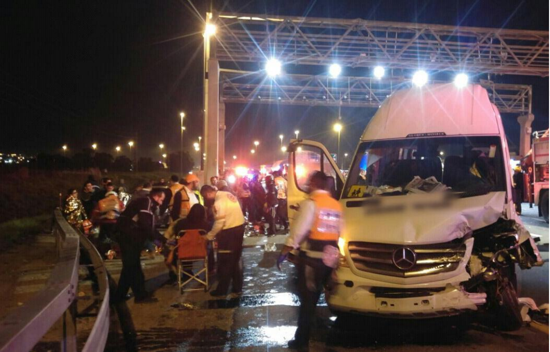 המיניבוס שנפגע בתאונה // צילום: דוברות מד"א // המיניבוס שנפגע בתאונה // צילום: דוברות מד"א