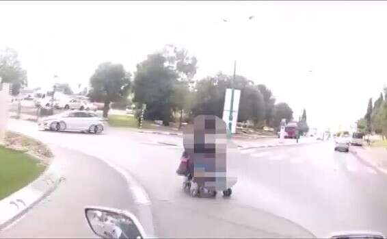 הפקרות: אימא עם עגלת תאומים חצתה את הכביש במקום אסור (בתוך כיכר!) ברחוב ויצמן ברמלה, בזמן שרוכב אופנוע, חובש של איחוד הצלה, עשה את דרכו אל היעד הבא וכמעט ונתקל בה ובעגלת התינוק שלה.