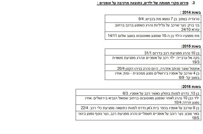 "ובכל זאת, הנתונים מצביעים שרק בין 10 ל-17 אחוזים מן הילדים חובשים קסדה בעת שהם רוכבים בשכונות המגורים ובמרכזי הערים. לפני יום כיפור ההורים חייבים להתריע בפני ילדיהם שרוכבים על האופניים, למשנה זהירות ולמיתון מהירות הרכיבה", טענה מנכ"לית ארגון "בטרם".