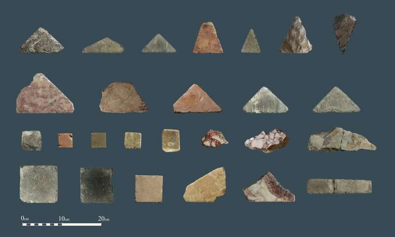 שניידר ציינה כי "הדגמים כוללים ריבועים, משולשים, דגמים דמויי כוכב, דגם דמוי שבשבת ועוד, כשהם עשויים מאריחים מנוסרים ומוחלקים היטב, שהותאמו זה לזה בדייקנות רבה מבלי שניתן היה להחדיר אפילו להב של סכין חדה ביניהם". המומחית משערת שבהמשך המחקר ישוחזרו דגמים נוספים.