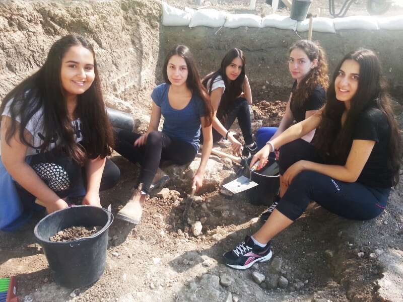 התלמידות באתר החפירה בציפורי. "התרגשו מהתגלית המפתיעה" // צילום: רשות העתיקות