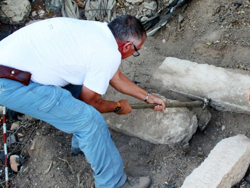 חשיפת הכתובות בציפורי // צילום: גיא פלג, באדיבות רשות העתיקות