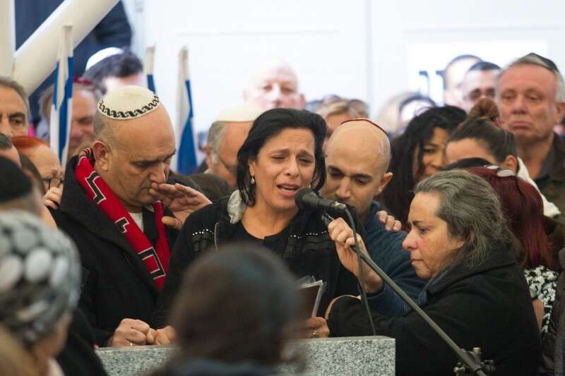 אמו של בקל מספידה את בנה, ובעלה לצדה // צילום: מישל דוט קום
