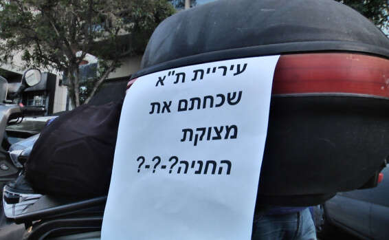 הפגנת האופנוענים הבוקר בת"א // צילום: רועי קסטרו // הפגנת האופנוענים הבוקר בת"א תנו לחנות בשקט: רוכבי האופנועים נגד עיריית ת"א