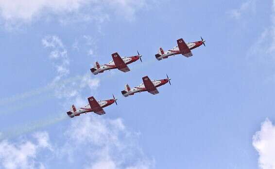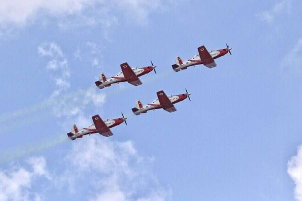 מי שהתעצלו להגיע גם לבסיסי צה"ל, יכלו לחזות במטס חיל האוויר שמשעות הבוקר ועד הצהריים עבר בשמי הארץ. המטס הורכב ממטוסי קרב, מטוסי תובלה וממסוקי חיל האוויר. המטס החל בערי הדרום, עבר צפונה לאזור חיפה ומשם חזרה לחצרים. גם אילת ויישובי הערבה נהנו ממטס מטוסי קרב. הצוות האווירובטי של חיל האוויר ביצע מפגני ראווה מעל חיפה, רמת דוד, בסיס תל נוף, מול חופי תל אביב, מוזיאון חיל האוויר בחצרים ומעל גן סאקר בירושלים.