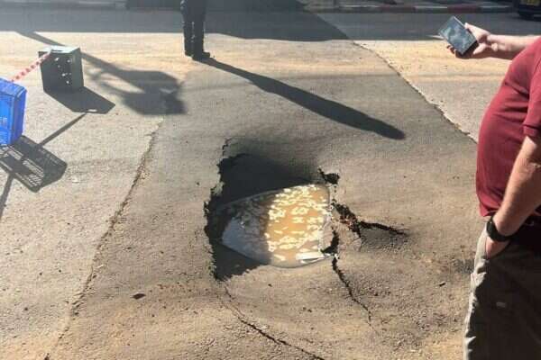 שוב בולען בתל אביב: בור נפער בכביש ברחוב אלנבי 29 בתל אביב. שוטרים שנמצאים במקום מכוונים את התנועה בנתיב הנגדי.