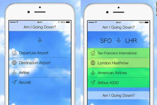 ההתרסקויות של שלושה מטוסים מלזיים גורמות לכם לשקשק לפני הטיסה הבאה שלכם? אפליקציה חדשה, בינתיים רק למכשירי iPhone, בודקת את ההיסטוריה של מסלול הטיסה, של סוג המטוס, של מזג האוויר ועוד כמה נתונים על הטיסה, כדי להודיע לכם מהם הסיכויים לסיים אותה בהתרסקות.
