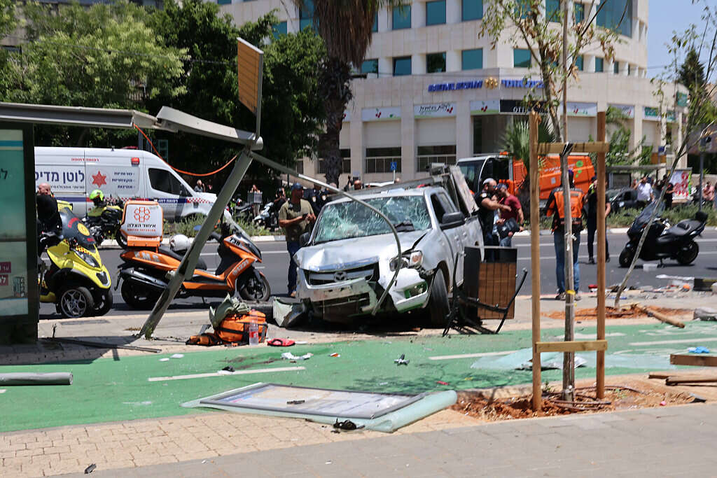 חובש רפואת חירום במד"א אלון שונים סיפר: "הגענו למקום בכוחות גדולים של ניידות טיפול נמרץ ואמבולנסים של מד"א. ראינו שמדובר בזירה קשה מאוד, ובסמוך לתחנת אוטובוס שכבו 5 פצועים, אישה כבת 46 שכבה על המדרכה כשהיא בהכרה וסובלת מחבלה רב מערכתית, 4 פצועים נוספים בשנות ה-30 נפצעו באורח בינוני וקל ופונו בניידות טיפול נמרץ של מד"א לבית החולים."