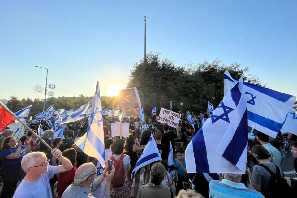 חסימה תחת חסימה: המשטרה עצרה היום (רביעי) שני מפגינים בגן שמואל שעל פי החשד הפרו את הסדר הציבורי. אחד מהם חשוד כי נהג ברכב שפגע בהולך רגל, שנפצע קל ופונה לבית החולים.