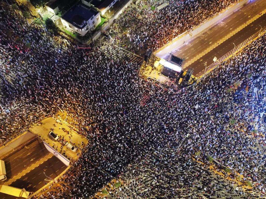 אלפי בני אדם מפגינים נגד בנתניה // קרדיט: גדעון לירון
