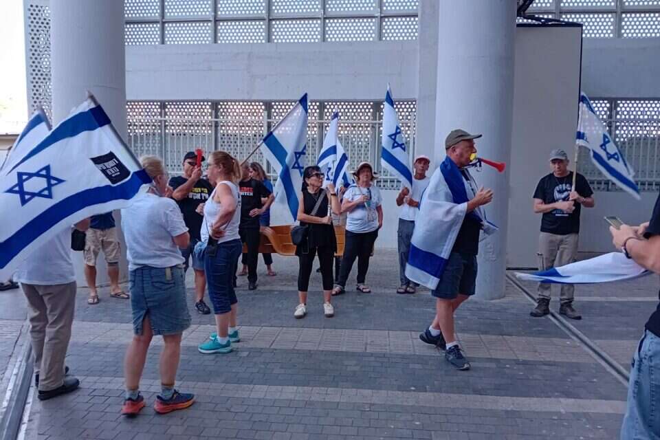 המחאה בתחנת הרכבת בבינימינה // קרדיט: שני תמים