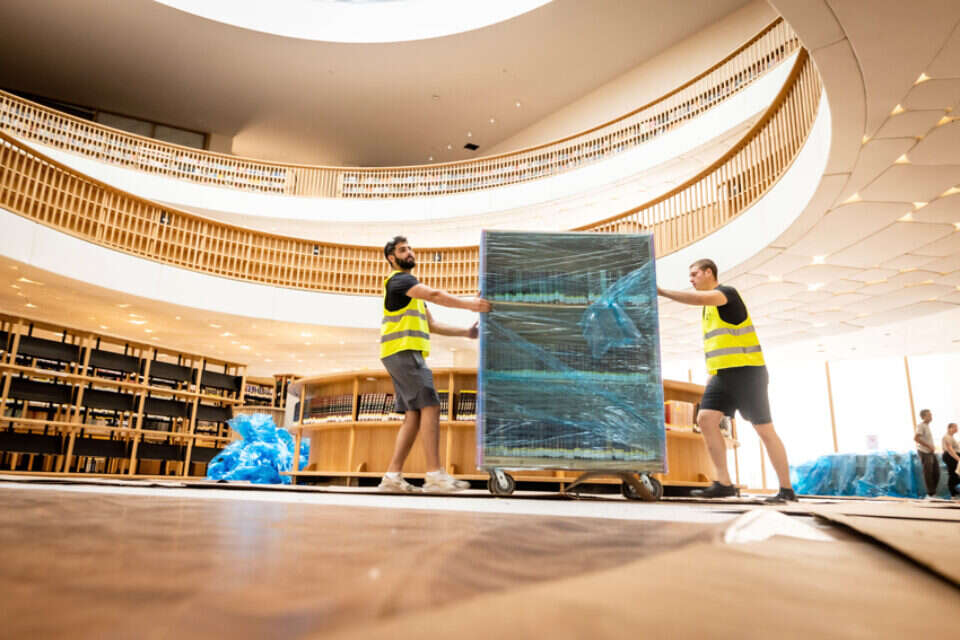 בחודשים האחרונים הועברו מבניין הספרייה הלאומית הנוכחי לבניין החדש בקריית הלאום מיליוני פריטים, הכוללים כ-4 מיליון ספרים ועוד מאות אלפי גיליונות עיתונים, מיליוני תצלומים היסטוריים, כ-1,500 אוספים וארכיונים אישיים, אלפי מפות היסטוריות, עשרות אלפי כתבי יד, ועוד מיליוני קבצים דיגיטליים, סלילי הקלטות מוזיקליות, כרזות ואוצרות רבים אחרים.