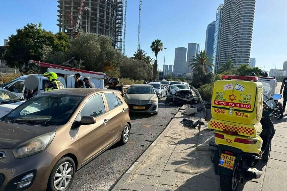 תאונת דרכים קשה בין 3 כלי רכבים ואופנוע במחלף ארלוזורוב \\ מד"א