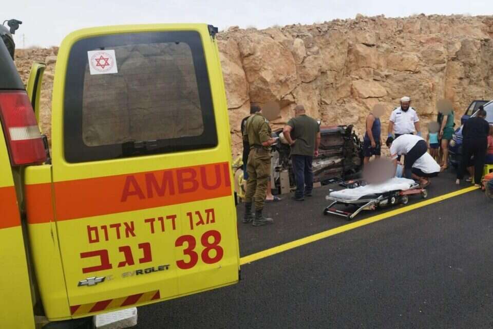 מוקדם יותר הבוקר (רביעי) התקבל דיווח במוקד 101 על רכב שהתהפך לשולי הדרך בכביש 40 דרומית למצפה רמון, ארבעה פצועים בנקודה.