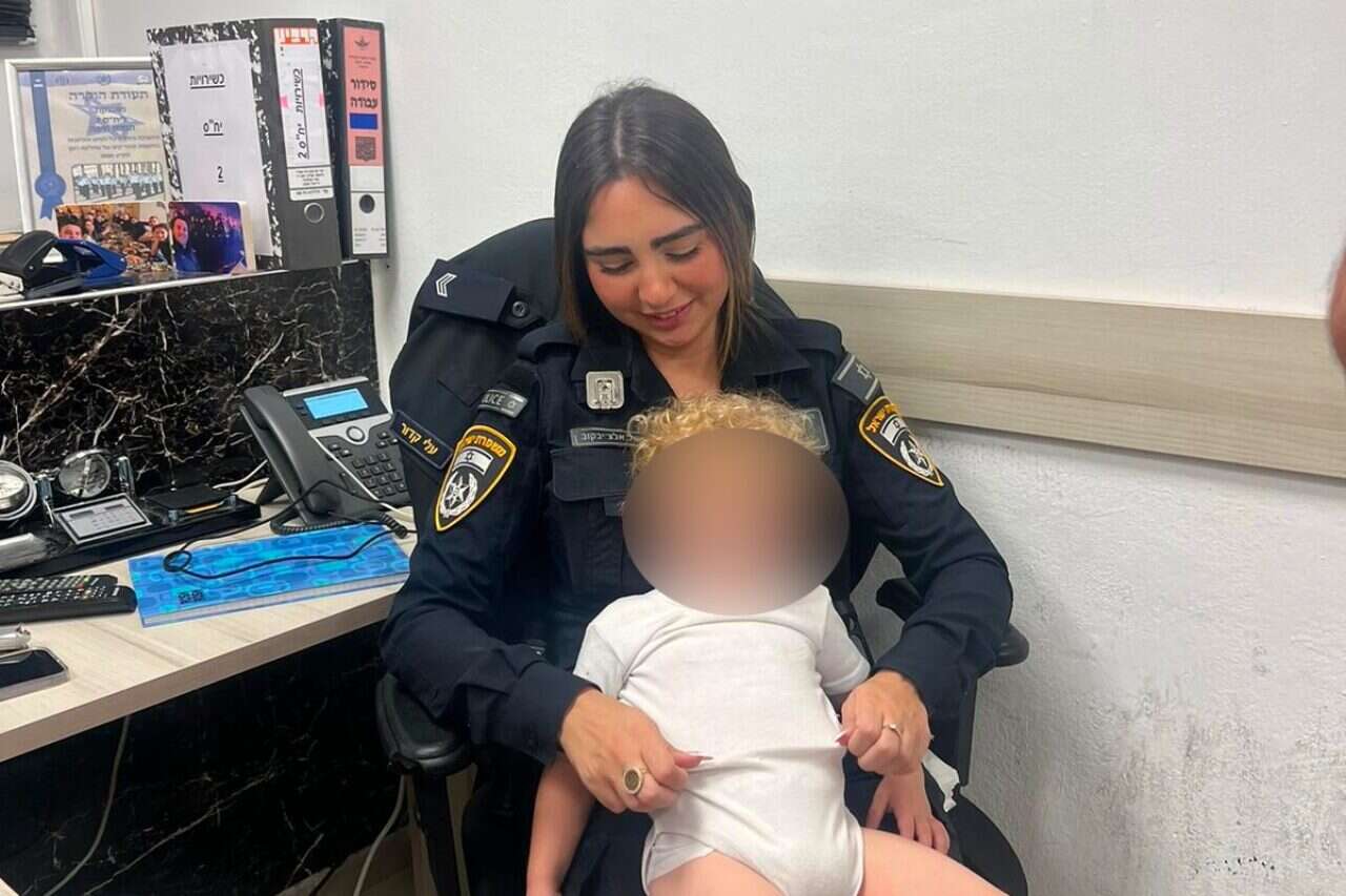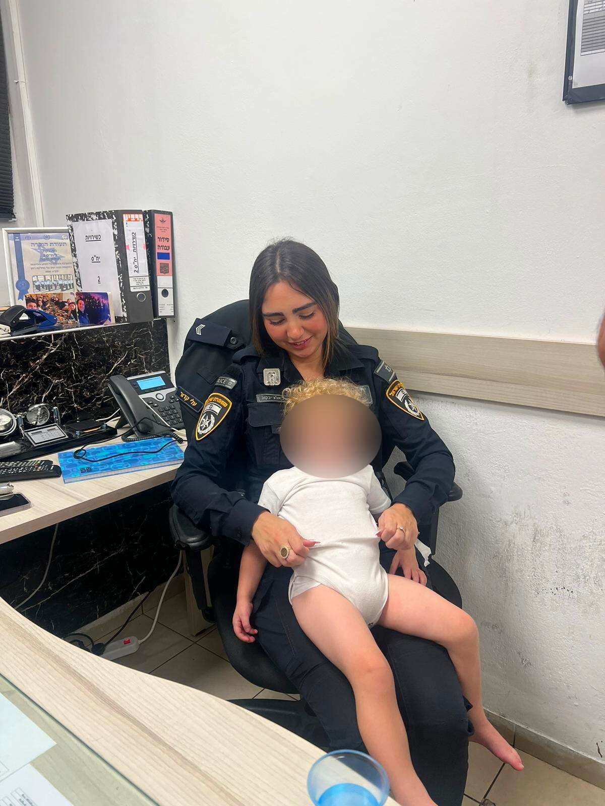 שוטרת במשטרת חיפה עם הילד. צילום: משטרת ישראל