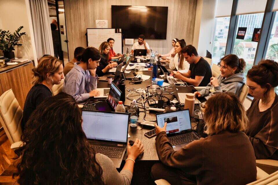 הכניסה לקומה השביעית במגדל המוזיאון בתל אביב, שם התמקם מטה משפחות החטופים, הומה ורוחשת אדם בימים אלה. כ-2,000 מתנדבים מגויסים למערך, כולם יודעים את תפקידם בדרך למטרה הסופית: להשיב את החטופים הביתה במהרה.